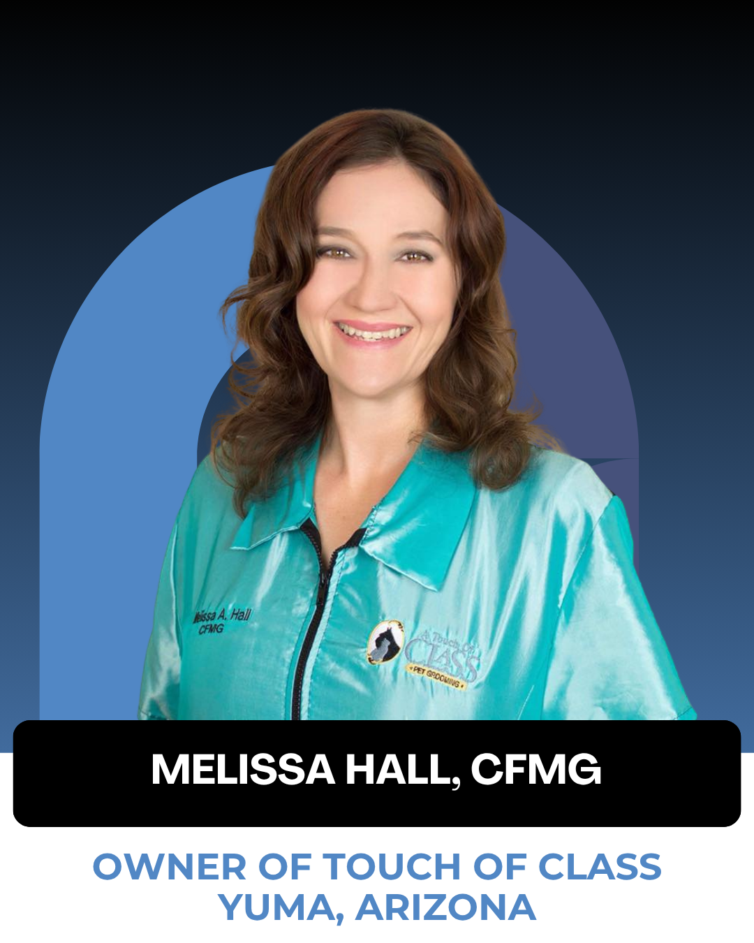 Melissa Hall is a second-generation groomer who began her career in 1996 working alongside her mother and sister in Arizona. She became a Certified Feline Master Groomer in 2014 and has since built a strong reputation in the cat grooming world. Melissa is a Wahl Animal Brand Ambassador, NCGI Certifier, and offers private instruction to cat groomers at her salon. She owns a successful grooming business in Yuma, Arizona, including the state’s first cat-exclusive luxury boarding and grooming facility, and shares her home with both Persian cats and standard poodles.