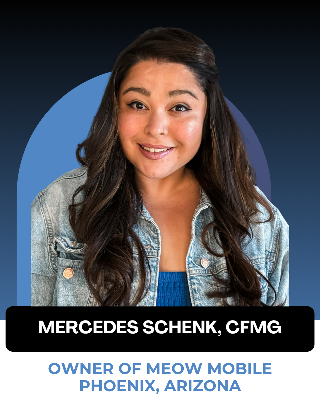 Mercedes Schenk is a feline-exclusive groomer and owner of The Meow Mobile in Phoenix, Arizona. She is the author of Holistic Cat Grooming and founder of the Association of Holistic Feline Specialists. A Certified Feline Master Groomer and ANDIS Ambassador, Mercedes also runs What’s The Mews Magazine and hosts Pussy Talk, the podcast. Known for her bold, no-nonsense approach, she blends holistic care with real-world grooming experience, challenging groomers to rethink how they work with cats and raise the standard of care across the industry.