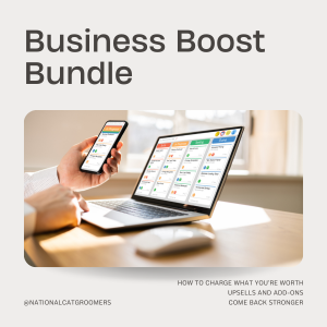 Give your grooming business the edge it deserves with our exclusive "Business Boost Bundle." This bundle combines three of our most impactful online courses designed for grooming professionals: "How to Charge What You’re Worth and Not Feel Bad About It," "Upsells + Add-Ons," and "7 Things You Can Do Now to Come Back Stronger Than Ever."